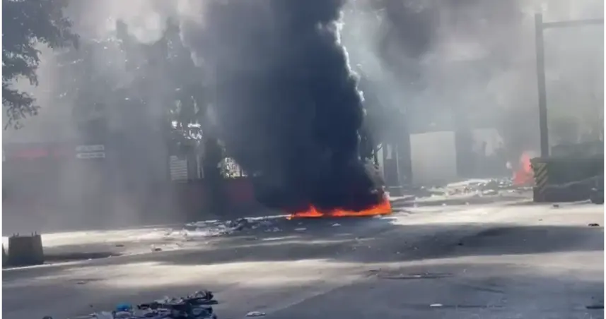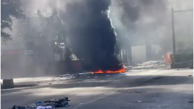 Las imágenes muestran neumáticos incendiados y desperdicios en las Avenidas Manolo Tavárez y Libertad.