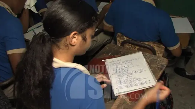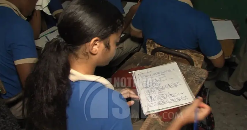 SANTO DOMINGO.- Estudiantes de secundaria del Liceo San Francisco de Asís en el sector Los Frailes en Santo Domingo Este, reciben clases apiñados y dos o tres veces a la semana, por falta de espacio en una casa alquilada.