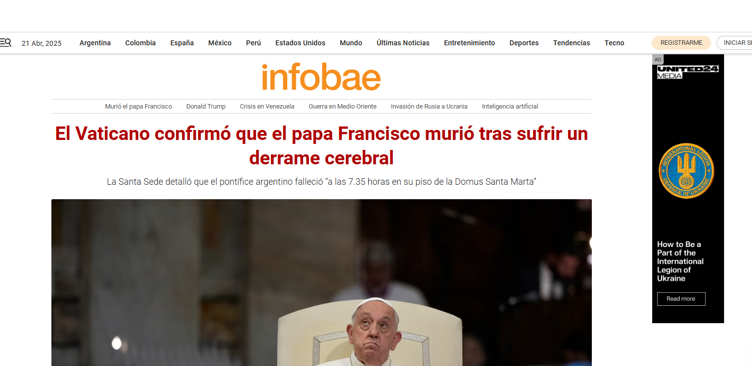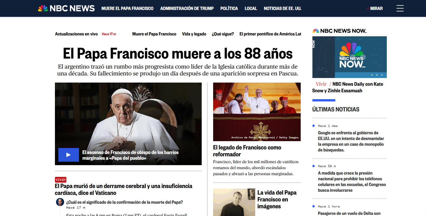 Medios impresos y digitales, como CNN, BBC Mundo, NBC News, Infobae, entre otros reflejan el impacto mundial del fallecimiento del Sumo Pontífice, ocurrido en la madrugada en el Vaticano.
