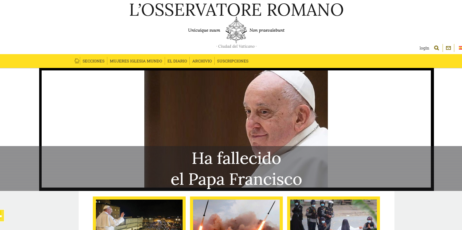 En Europa, El País de España tituló su portada con: “Fallece el papa Francisco, un líder de la Iglesia cercano, humilde y valiente”, en tanto que L'Osservatore Romano, diario oficial del Vaticano, publicó una edición especial con una fotografía a toda página del pontífice y el titular en latín: “Franciscus in pace”.
