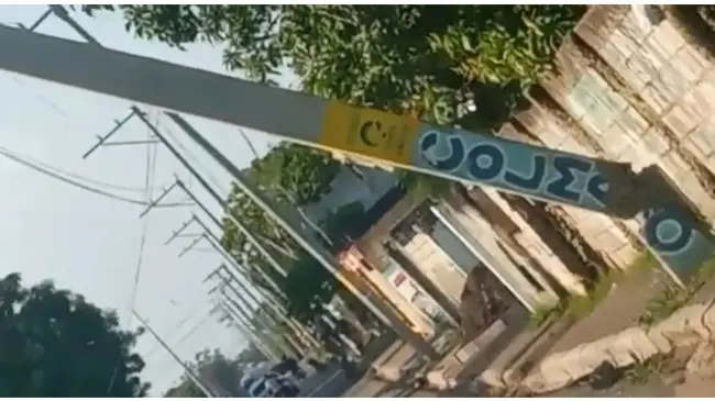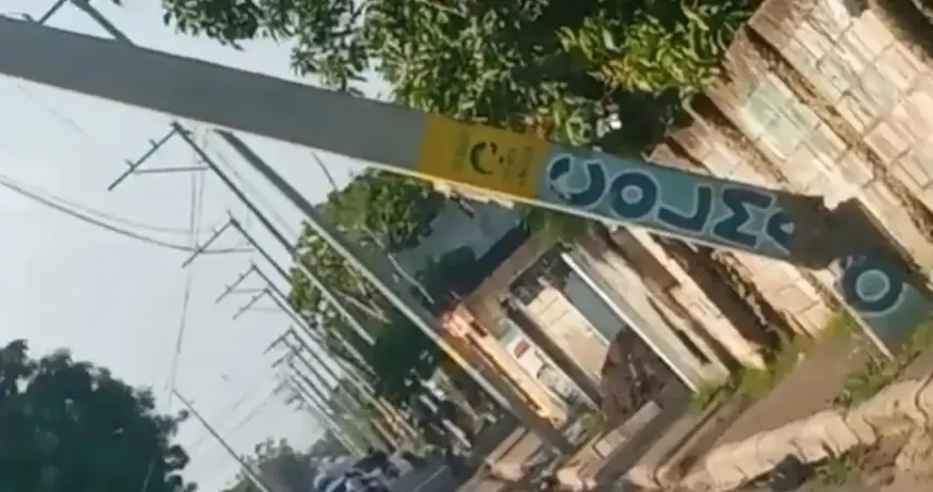 Video: Poste a punto de caer pone en peligro a residentes en Valiente