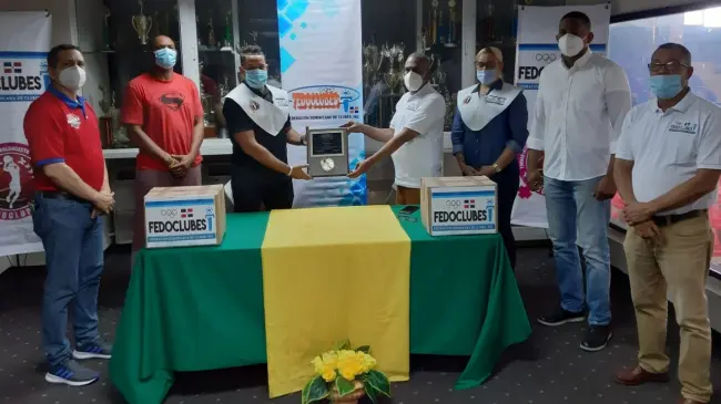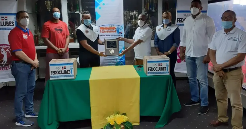 Soriano recibió una placa de reconocimiento de parte de Ramírez en nombre de Fedoclubes, además de una caja con productos alimenticios y un aporte económico.