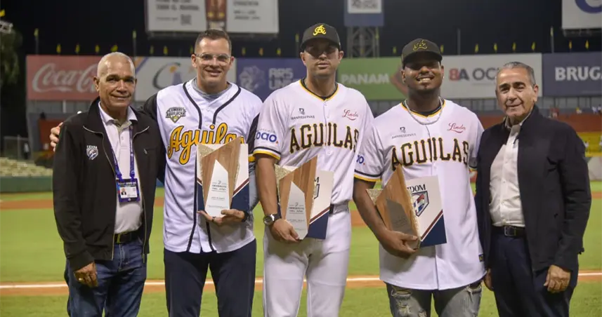 La entrega de los premios estuvo a cargo del presidente de las Águilas, Victor García Sued; el coordinador se operaciones de LIDOM, Valentín Contreras.