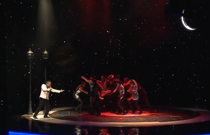 “La Asesina” con esta bachata el cantautor Zacarías Ferreira cautivó la noche con un fondo que hacía alusión a una noche de estrellas en un parque.