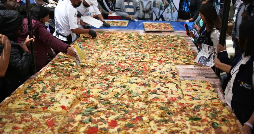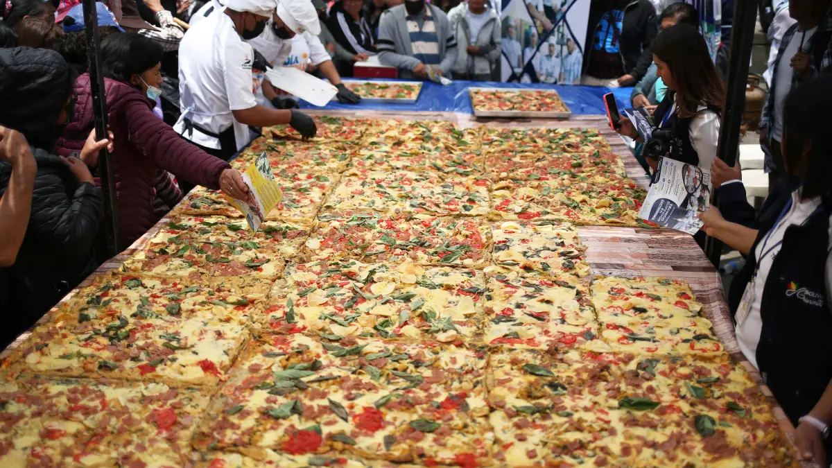 Mora dijo que se utilizaron unos 3,000 huevos para formar una pizza de unos 10 metros cuadrados.