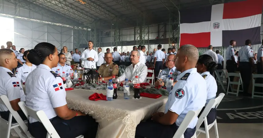 Tras el encuentro con la Armada, el presidente Abinader se trasladó a la Base Aérea de San Isidro para compartir el almuerzo con los miembros de la Fuerza Aérea, responsables de salvaguardar el espacio aéreo nacional.