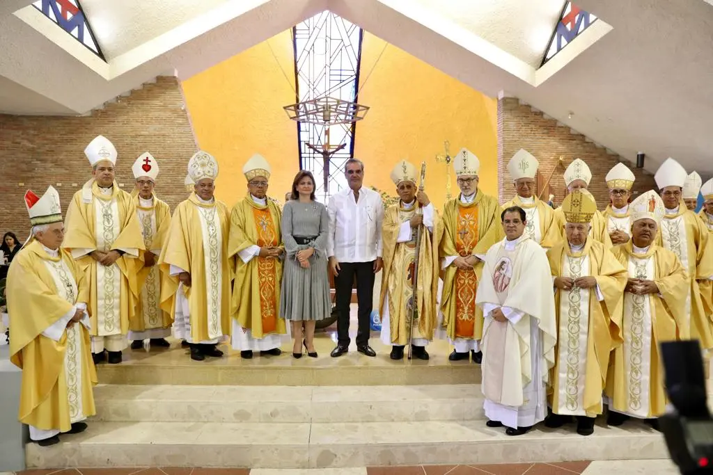 Durante la homilía, las primeras palabras de monseñor Bretón Martínez fueron para agradecer a Dios por la oportunidad de celebrar este 60 aniversario y saludó la presencia del presidente Abinader y de la vicepresidenta Peña en la misa.