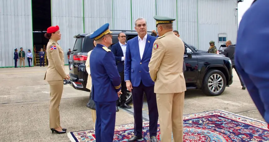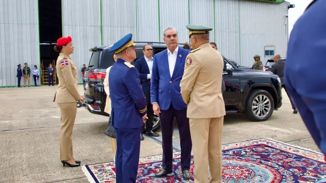 El mandatario llegó al país a las 4:00 de la tarde por la Base Aérea de San Isidro y, de inmediato, fue recibido por el ministro de Defensa, teniente general Carlos Antonio Fernández Onofre; el comandante general de la Fuerza Aérea, mayor general piloto Floreal Suárez Martínez; y el director de la Guardia Presidencial, general de brigada Guillermo Caro Cruz.