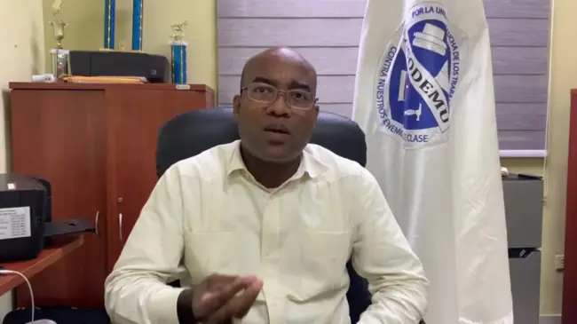 SANTO DOMINGO.- El presidente de la Asociación de Empleados Universitarios (Asodemu), Reynaldo Aybar, explicó los motivos por los cuales salió en un vídeo la tarde de este martes donde se visualiza con un palo en las manos y, además, algunos cristales de una puerta del local de Asodemu rotos.