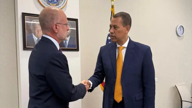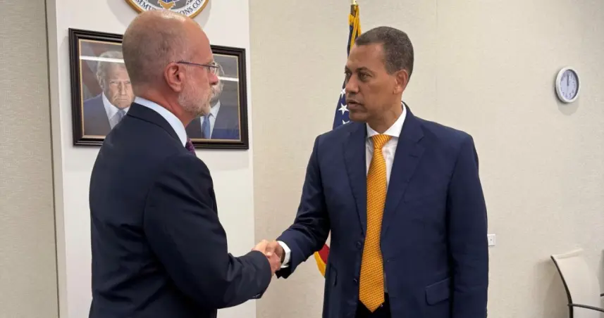 Washington DC.– Washington D.C.- El presidente del Consejo Directivo del Instituto Dominicano de las Telecomunicaciones (INDOTEL), Guido Gómez Mazara, realizó una visita oficial a la sede de la Comisión Federal de Comunicaciones (FCC) en Washington, donde fue recibido por el presidente de la entidad, Brendan Carr, quien mostró interés de cooperar con República Dominicana en materia tecnológica y en telecomunicaciones.