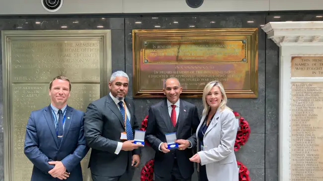 En el marco de su visita, el vicealmirante realizó un recorrido por diferentes instalaciones incluyendo las Casas del Parlamento, donde fue recibido por el señor David Rutley, Ministro para las Américas y el Caribe, así como al Centro de Seguridad Marítima Conjunta, donde sostuvo una reunión con el señor Phil Dunn.