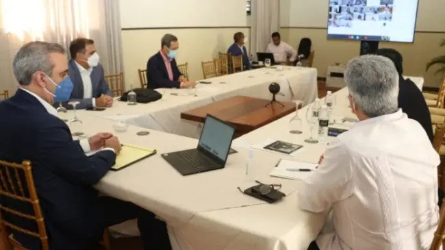 Abinader estuvo acompañado por Lisandro Macarrulla y Jochy Vicente, anunciados ministros de la Presidencia y de Hacienda del gobierno que inaugura el 16 de agosto. También estuvieron Francisco Torres y el asesor Pedro Bono. De manera virtual participaron Miguel Ceara y José Rijo, nominados al ministerio de Economía y la dirección de Presupuesto, así como Juan Mustafá y Andrés Astacio