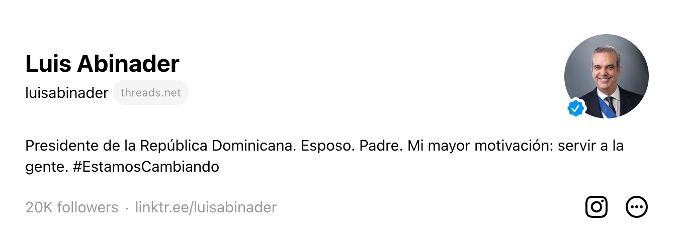 Para seguir al presidente Abinader en Threads, busque @LuisAbinader.
