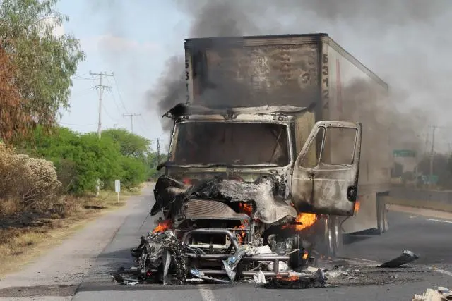 Según informes extraoficiales sujetos armados amagaron con armas de fuego a conductores de tráileres para apoderarse de sus unidades e incendiarlas.