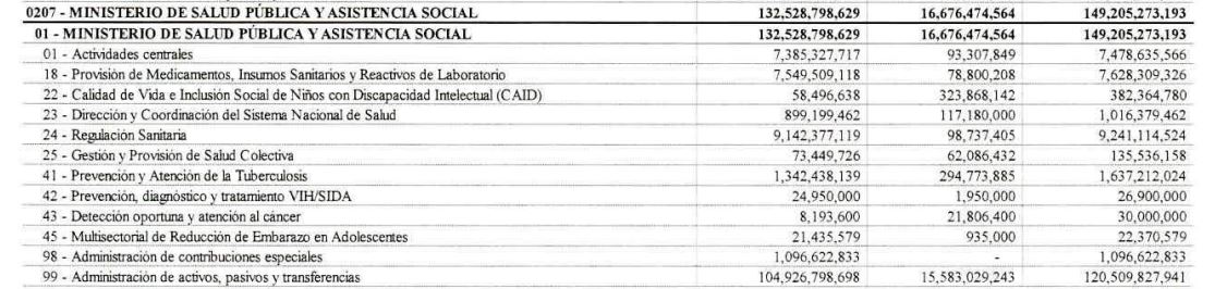 Salud Pública destinará una suma superior a los 9,691 millones de pesos a la Atención Primaria Dirección Central Del Servicio Nacional De Salud; 22 millones 370 mil 579 al programa Salud escolar, a realizarse en conjunto al Ministerio de Educación; 135 millones 536 mil 158 para Prevención y Atención de la Tuberculosis; 26 millones 900 mil a la Detección oportuna y atención al cáncer; y 100 millones se destinarán a la Detección oportuna y atención al déficit auditivo en niños hasta 5 años.