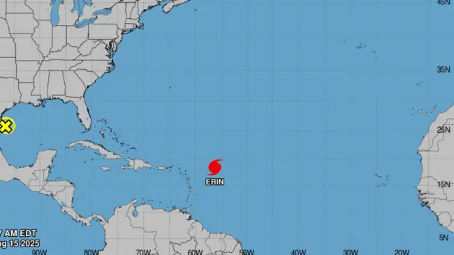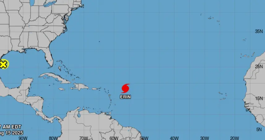 De acuerdo con el NHC, Erin mantiene una trayectoria hacia el oeste-noroeste que continuará durante el fin de semana, pasando cerca o al norte de las Islas de Sotavento del Norte.