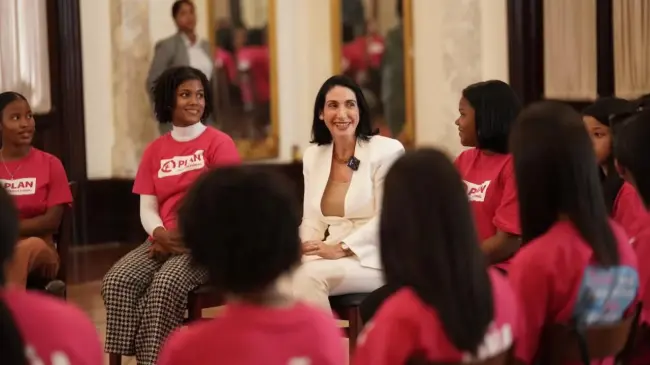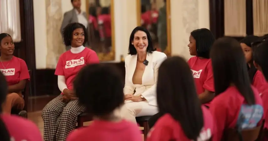 Las niñas y adolescentes, en edades comprendidas entre 13 y 17 años, fueron recibidas en las escalinatas del Palacio Nacional por la primera dama y estuvieron acompañadas por Gerrit Saen, director ejecutivo de Plan, quien agradeció la apertura.