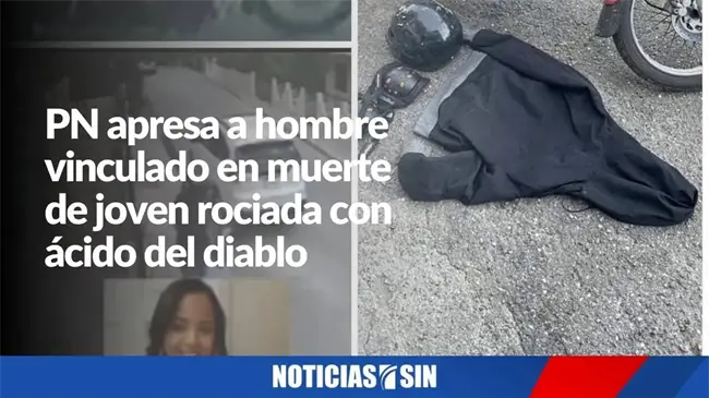 Fue apresado Antonio Manuel Henríquez Ovalles, de 56 años, vinculado a la muerte de una mujer que fue rociada con ácido del diablo en el municipio de Tenares, provincia Hermanas Mirabal.Según informo la policía nacional, Ovalles fue detenido en un apartamento en Santiago, donde se le ocupó un casco protector, un abrigo y un par de rodilleras que fueron utilizados por el autor del hecho en el que resultó afectada Yanelis Arias López.