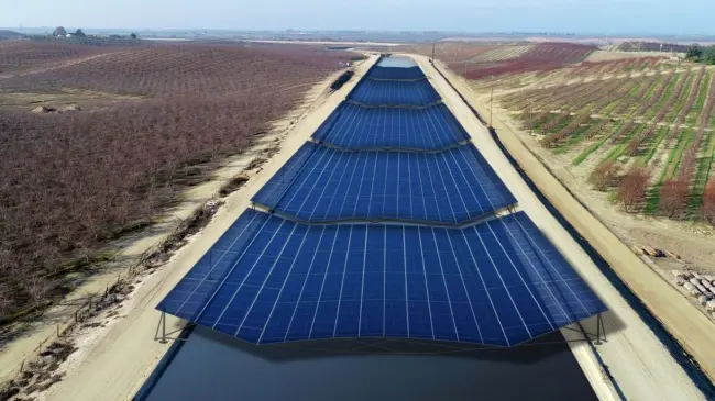 Un estudio de la Universidad de California estimó que el estado ahorraría 240,000 millones de litros de agua si cubriera todos sus canales de riego de paneles solares. A su vez, estos proyectos añadirían 13 GW de capacidad en energía solar a la red eléctrica.