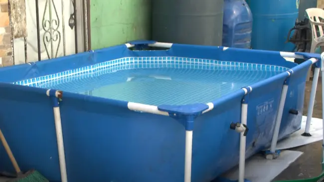 Carlos Manuel Bitini, aprovechó el asueto del viernes santo para colocar una piscina, lo propio hicieron sus vecinos quienes dejaron que sus hijos con trajes de baño y hasta las populares trenzas como peinado para estas fechas, disfrutarán del agua.