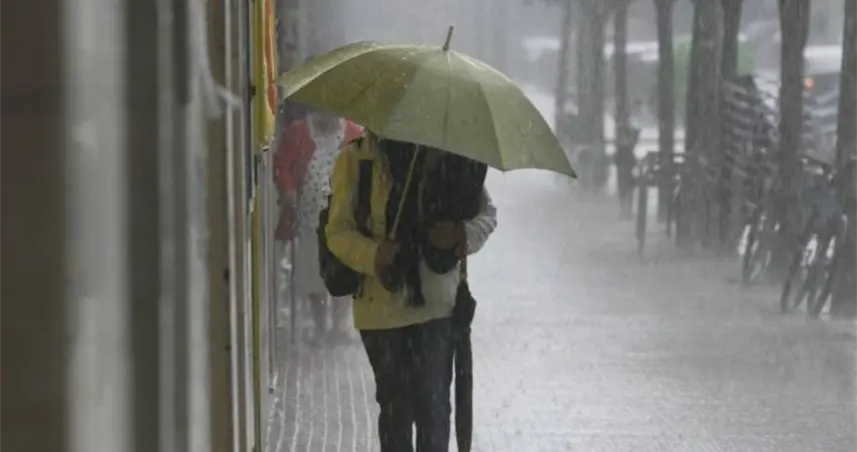 Una persona bajo la lluvia con un paraguas.