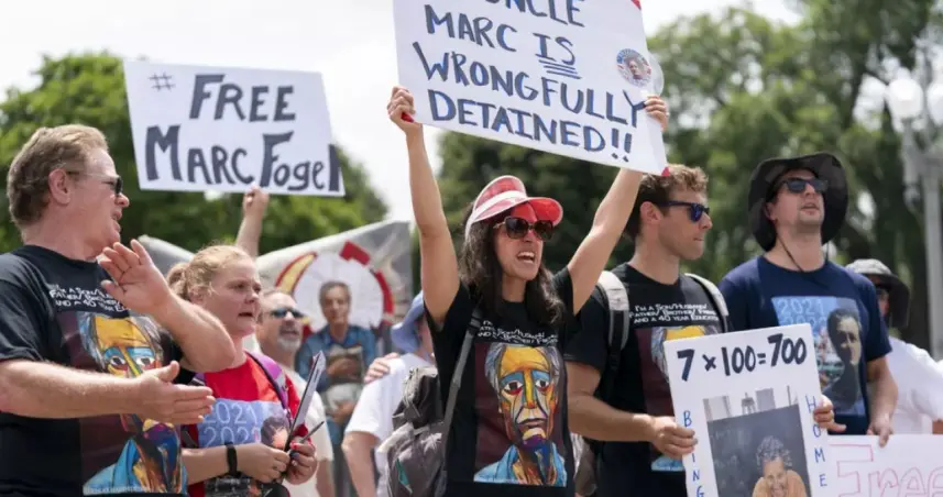 Protesta de estadounidenses en Lisboa contra Trump y su guerra comercial