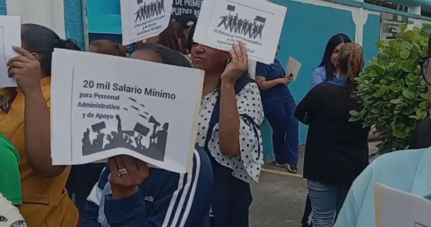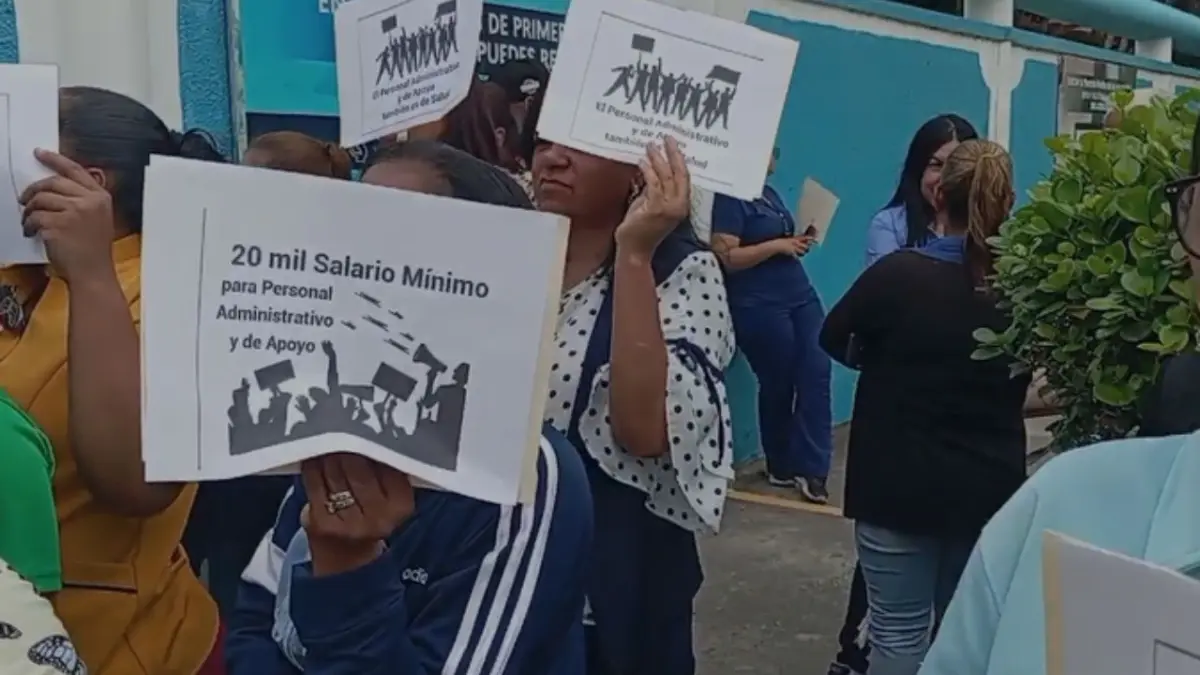 Los manifestantes que incluyen personal de laboratorio, secretaria, de limpieza, camillero, de lavandería indicaron que devengan un salario de 10, 000 pesos al mes y no le han aumentado desde el gobierno de Danilo Medina en el 2017.