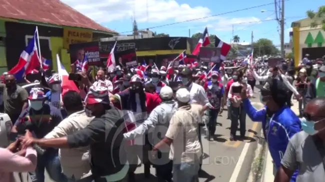 La actividad fue realizada frente al Parque Duarte y los manifestantes recorrieron varias calles de la localidad.