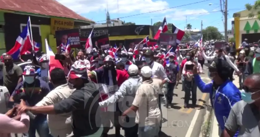 DAJABÓN.- Cientos de personas del grupo los nacionalistas encabezaron una marcha en reclamo de que el canal que se construye en Haití no sea conectado al rio Masacre y que no sean desviadas sus aguas.