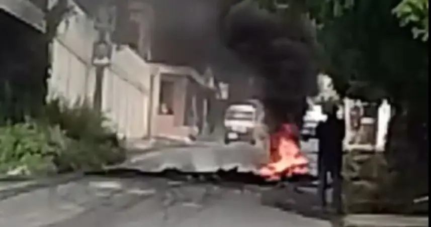 Llegó, un video a nuestra redacción, en que se muestra como los residentes incendiaron neumáticos bloqueando el tránsito en la calle principal.