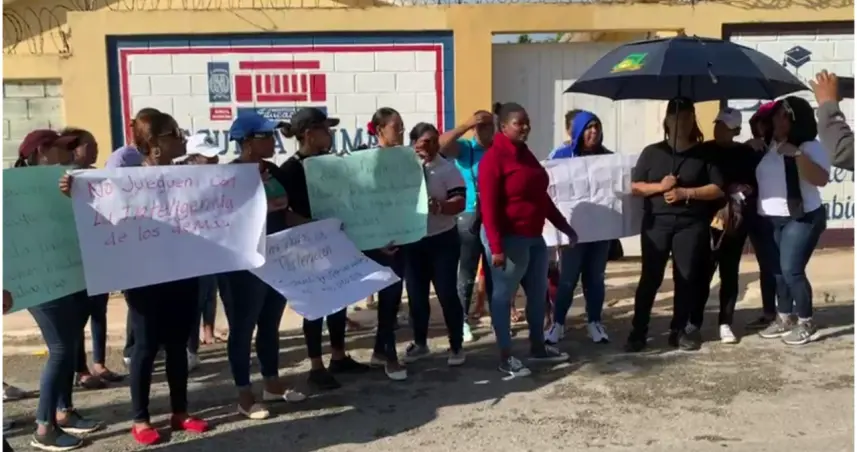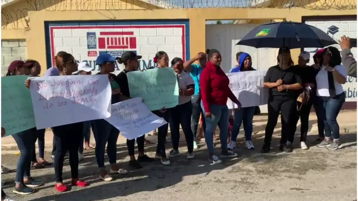 Los maestros de dicha comunidad, se apostaron frente a un centro educativo, para reclamar alegando que las plazas disponibles en el lugar les corresponden a los profesionales de la educación de allí.