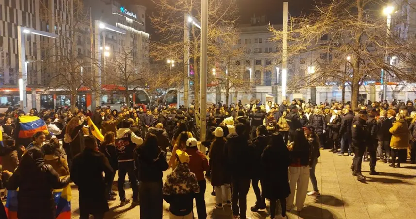 Una hora antes, en otro punto del centro de la ciudad, la comunidad venezolana de Italia organizaba otra protesta en apoyo al ataque estadounidense y congregó a unas 60 personas con banderas y pancartas en las que se podía leer 'Ha llegado la hora de libertad' y consignas a favor de los opositores Edmundo González Urrutia y de la Premio Nobel de la Paz, María Corina Machado.