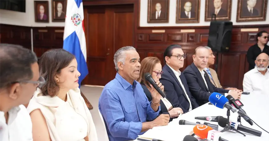 - Durante la conferencia de prensa el ministro Joel Santos estuvo acompañado por las gobernadora de Santiago, Rosa Santos; el senador Daniel Rivera, el alcalde Ulises Rodríguez; el director Minería, Rolando Muñoz y el director de Gestión Social de MEM, Vladimir Ozorio.