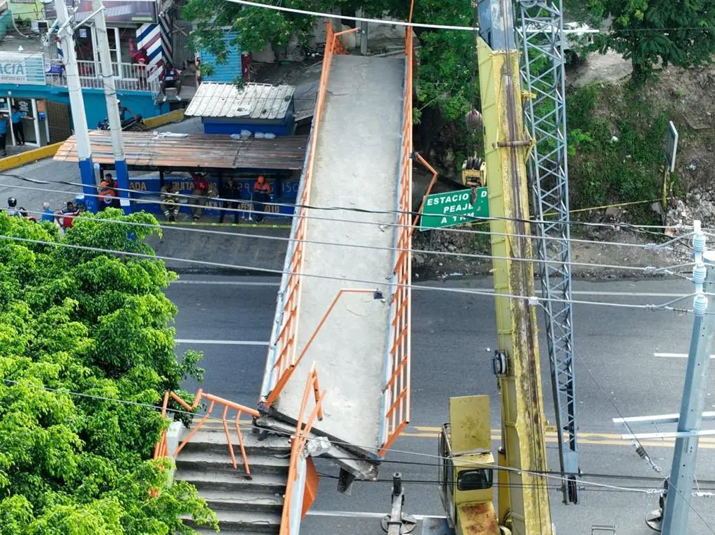 Redacción.- Un puente peatonal ubicado en el sector Quita Sueño de Haina, está a punto de colapsar luego de ser impactado por un camión cuyo conductor emprendió la fuga, en un hecho ocurrido este jueves.