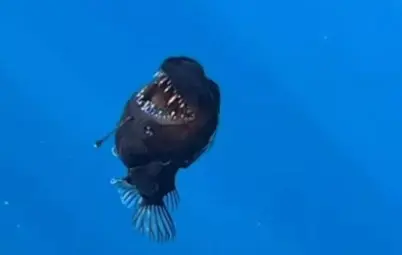 El pez diablo negro, también conocido como rape abisal, es un depredador que habita entre los 200 y 2,000 metros de profundidad, en la total oscuridad del fondo oceánico. Su apariencia es inconfundible: cuerpo oscuro y gelatinoso, una dentadura afilada y un apéndice bioluminiscente en su cabeza que le permite atraer a sus presas.