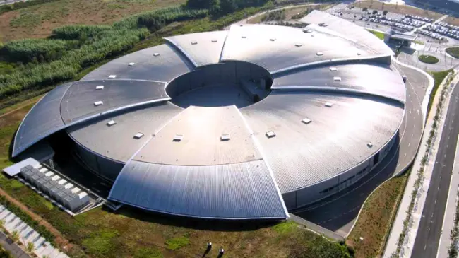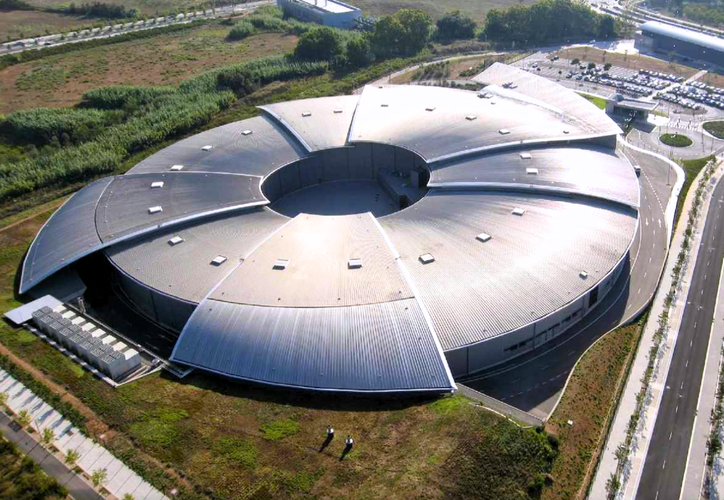 Un sincrotrón es un tipo de acelerador de partículas que utiliza campos eléctricos y magnéticos para acelerar electrones a velocidades cercanas a la de la luz y desviarlos en trayectorias circulares. Al moverse a estas velocidades, los electrones emiten una radiación muy intensa llamada luz de sincrotrón.
