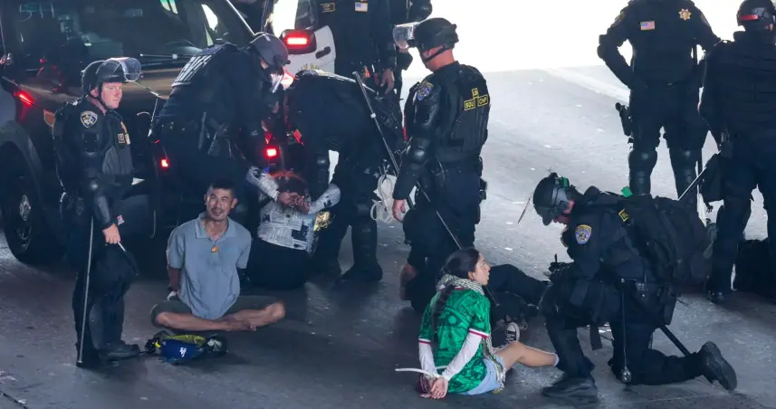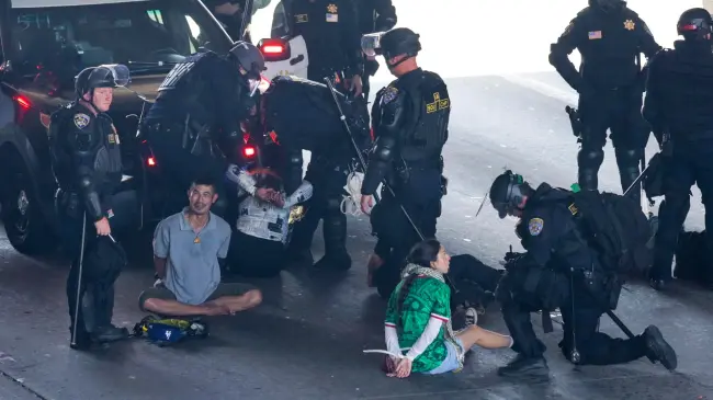 "Hablen alto. Permanezcan pacíficos. Mantengan la calma. No usen la violencia y respeten a los agentes de la ley que están haciendo todo lo posible por mantener la paz", ahondó el demócrata que mantiene un pulso con la Casa Blanca, que ha amenazado con quitarle fondos a California, considerada por sí sola la cuarta economía del mundo.