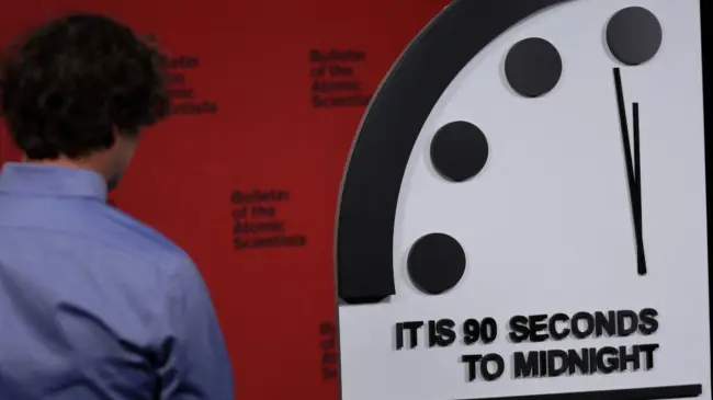 En 2023, los científicos decidieron rebajar de 100 a 90 los segundos restantes para el apocalipsis, los más cerca que el reloj había estado nunca de marcar su hora final, y este año optaron por mantener la misma hora.