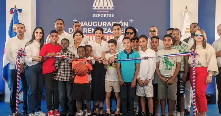 También techo nuevo de aluzinc, construcción de vestidores y oficinas, reparación de baños y de la verja perimetral, así como la instalación de un sistema de cámaras de seguridad y servicios de electricidad general, entre otras mejoras. Pies de fotos La vicepresidenta Raquel Peña y el ministro Kelvin Cruz, acompañados por la gobernadora Severina Gil, el alcalde Frank Rodríguez, niños baloncestistas y otras autoridades de la provincia, realizan el corte de la cinta para dejar formalmente remozado el Polideportivo de Loma de Cabrera.