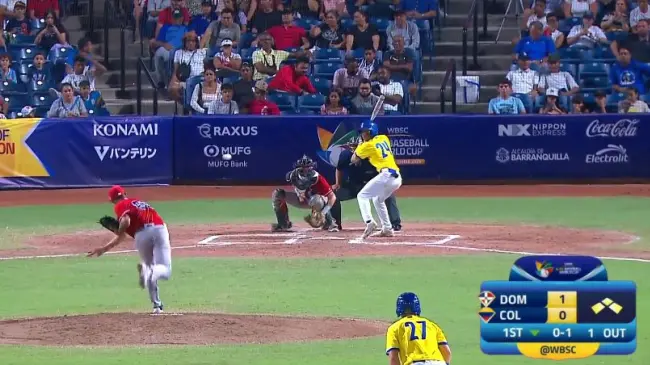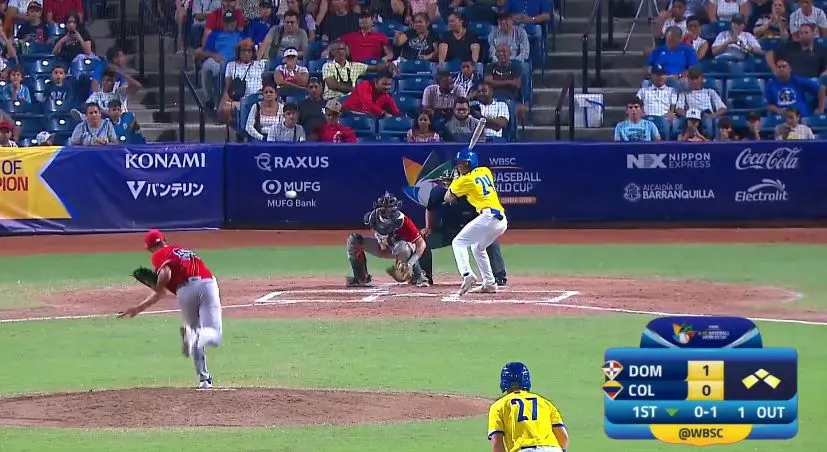 La defensa dominicana enseñó recuperación al lograr una doble matanza para cerra la primera entrada de Colombia con bases llenas. Por la vía 4-6-3 los dominicanos lograron una rápida jugada de dos outs.