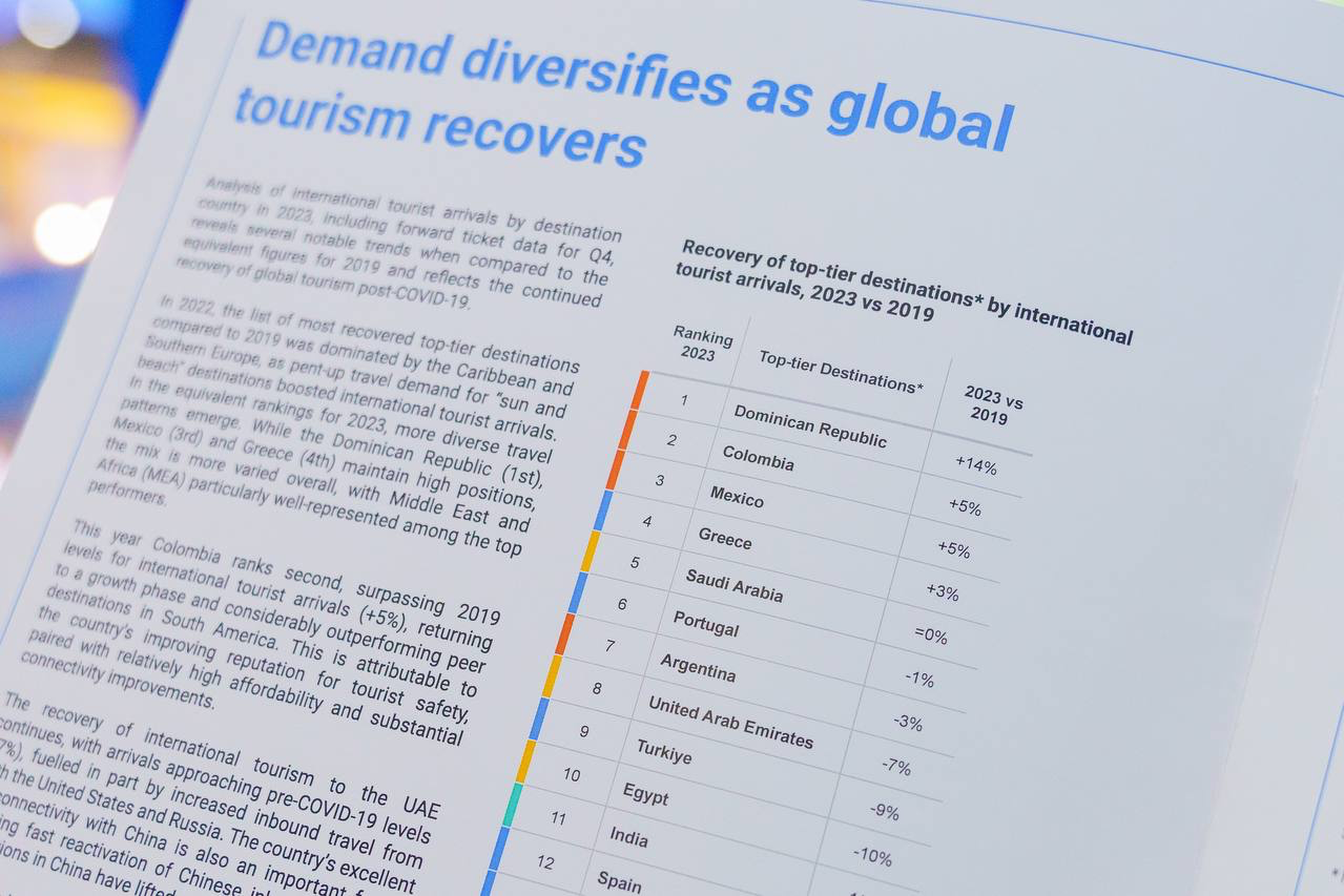 Segun el informe, el país se posiciona por encima de países como España, Arabia Saudí, México, en la recuperación del sector, comparando los números del 2023 vs 2019, en su reporte 2023 Global Travel Trends.