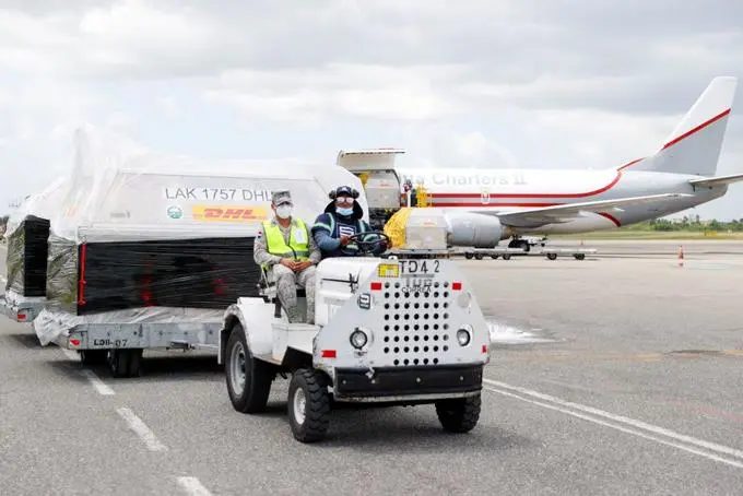 Las vacunas llegaron en el vuelo Kalitta Charters por el Aeropuerto Internacional de Las Américas (AILA) a las 2:00 de la tarde.