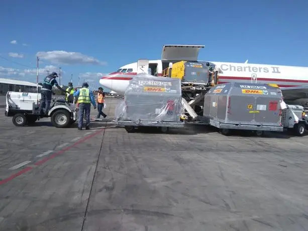 El cargamento arribó por el Aeropuerto Internacional de Las Américas, José Francisco Peña Gómez y fue recibido por un personal del Ministerio de Salud Pública y del Cuerpo Especializado de Seguridad Aeroportuaria y de Aviación Civil.