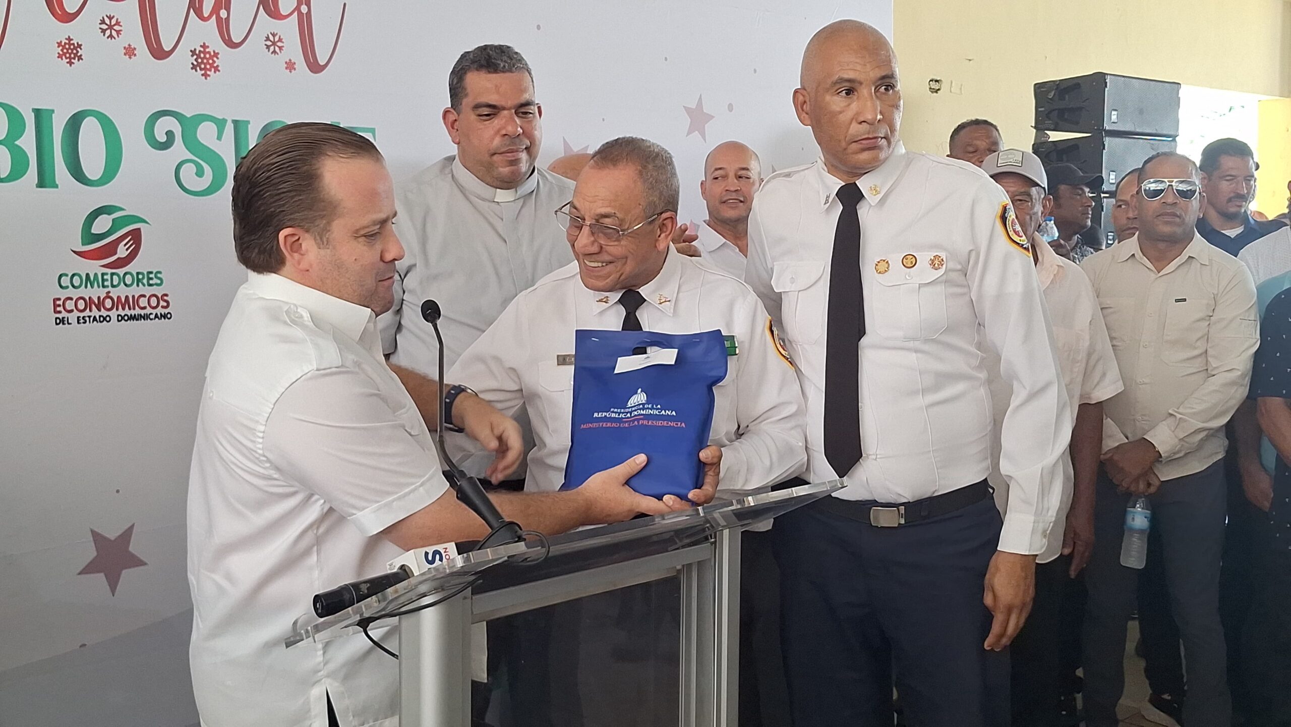 El funcionario hizo entrega de ayudas y bonos navideños a los representantes del cuerpo de Bomberos, Defensa Civil, iglesia cristiana y evangélica así mismo como a la Federación de Motoristas y Juntas de Vecinos.
