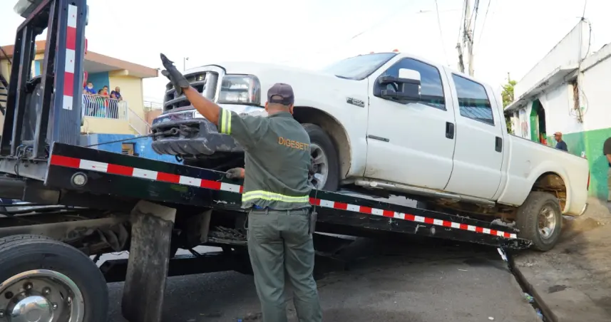 En relación a la provincia Santo Domingo, municipio Santo Domingo Este, también se retiraron vehículos abandonados en varios lugares, como en la Calle Juana Inés de la Cruz, residencial San Isidro.