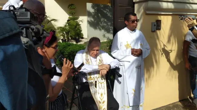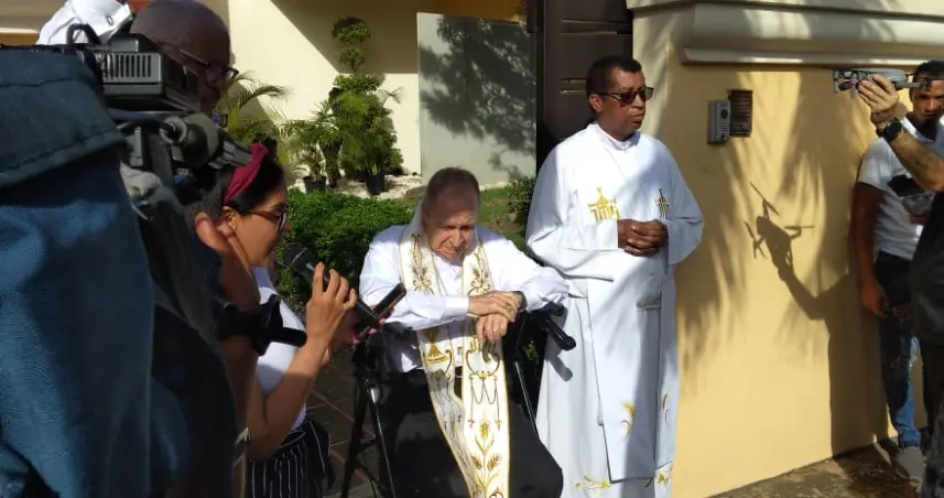 En el recorrido, los religiosos pasaron frente a la residencia de López Rodríguez, quien salió a saludar a los feligreses.