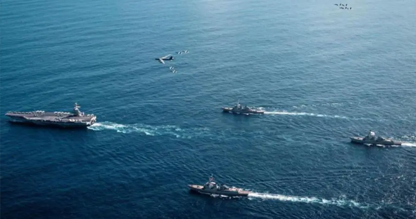 El grupo de ataque del portaaviones Gerald R. Ford de la Armada de EE.UU. navega hacia el Caribe en el océano Atlántico, 13 de noviembre de 2025.
