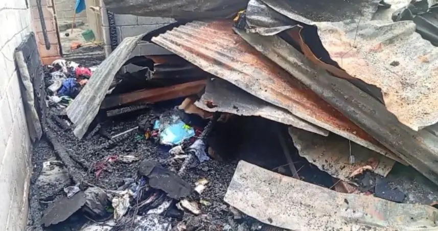 El siniestro se registró mientras los propietarios celebraban su boda, perdiendo todas sus pertenencias a causa del fuego que consumió la vivienda y que se presume se originó por un cortocircuito.