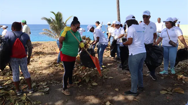Las labores incluyeron la recogida de desechos plásticos, botellas de vidrio, vasos de foam, fundas, escombros y maleza, además del barrido de desechos en la zona.