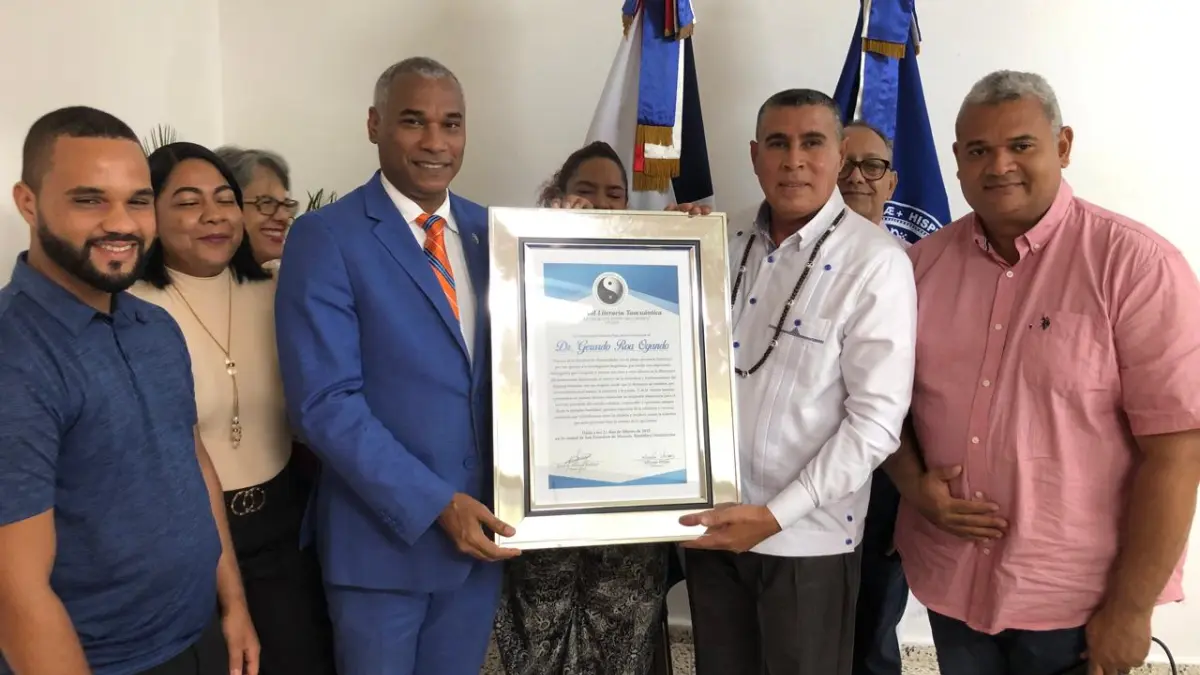 San Francisco, RD.-La Comunidad Literaria Taocuántica reconoció al decano de la Facultad de Humanidades de la Universidad Autónoma de Santo Domingo (UASD), Dr. Gerardo Roa Ogando, por sus aportes al desarrollo de la Extensión Universitaria.